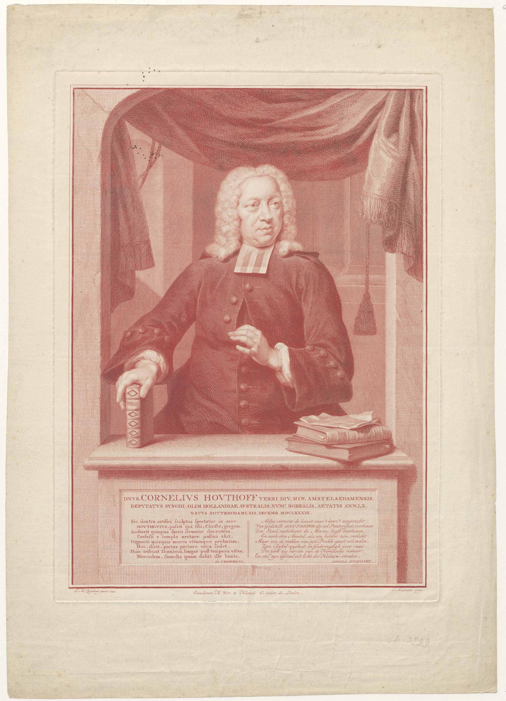 Portret van Cornelius Houthoff (1683-1752), predikant te Amsterdam, druk in rood