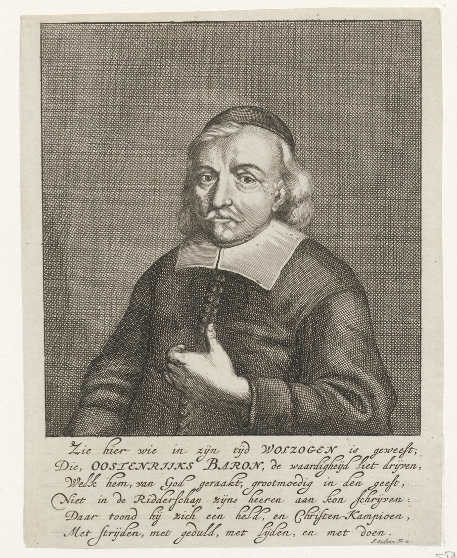 Portret van Ludovicus Wolzogen (1633-1690), predikant en hoogleraar te Utrecht en Amsterdam, met gedicht van J. Oudaan Fr-z.