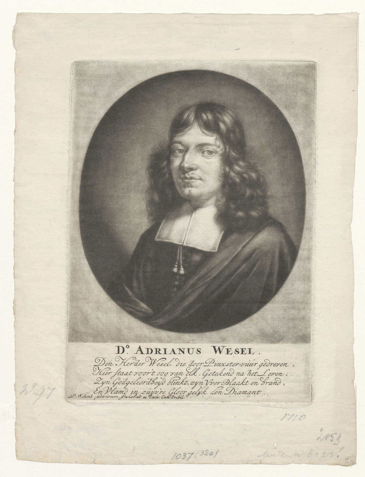 Portret van Adrianus Wesel (1651-1710), predikant te Amsterdam