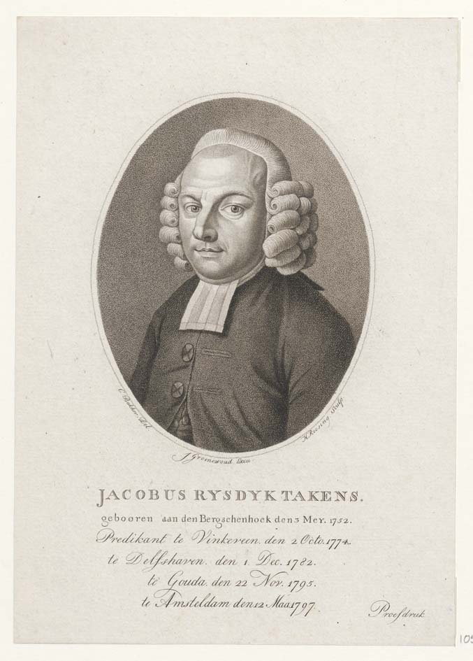 Portret van Jacobus Rijsdijk Takens (1752-1804), predikant te Vinkeveen, Delftshaven, Gouda en Amsterdam