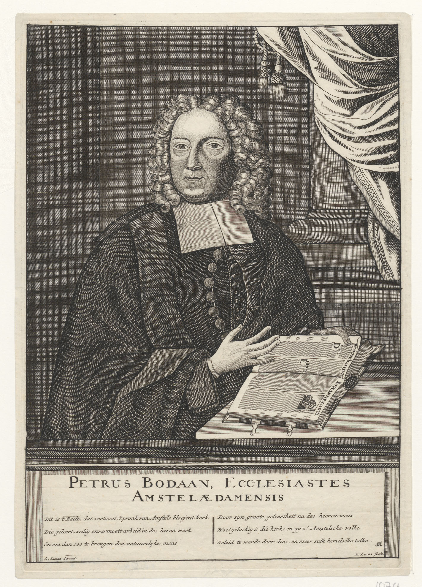 Portret van Petrus Bodaan (Boudaan)(1666-1734), predikant te Amsterdam