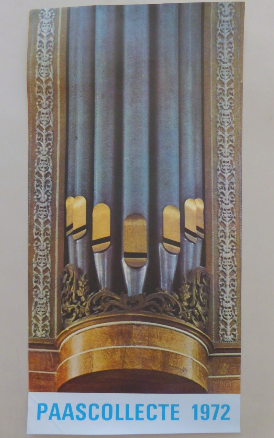 Affiche "paascollecte 1972", met kerkorgelpijpen