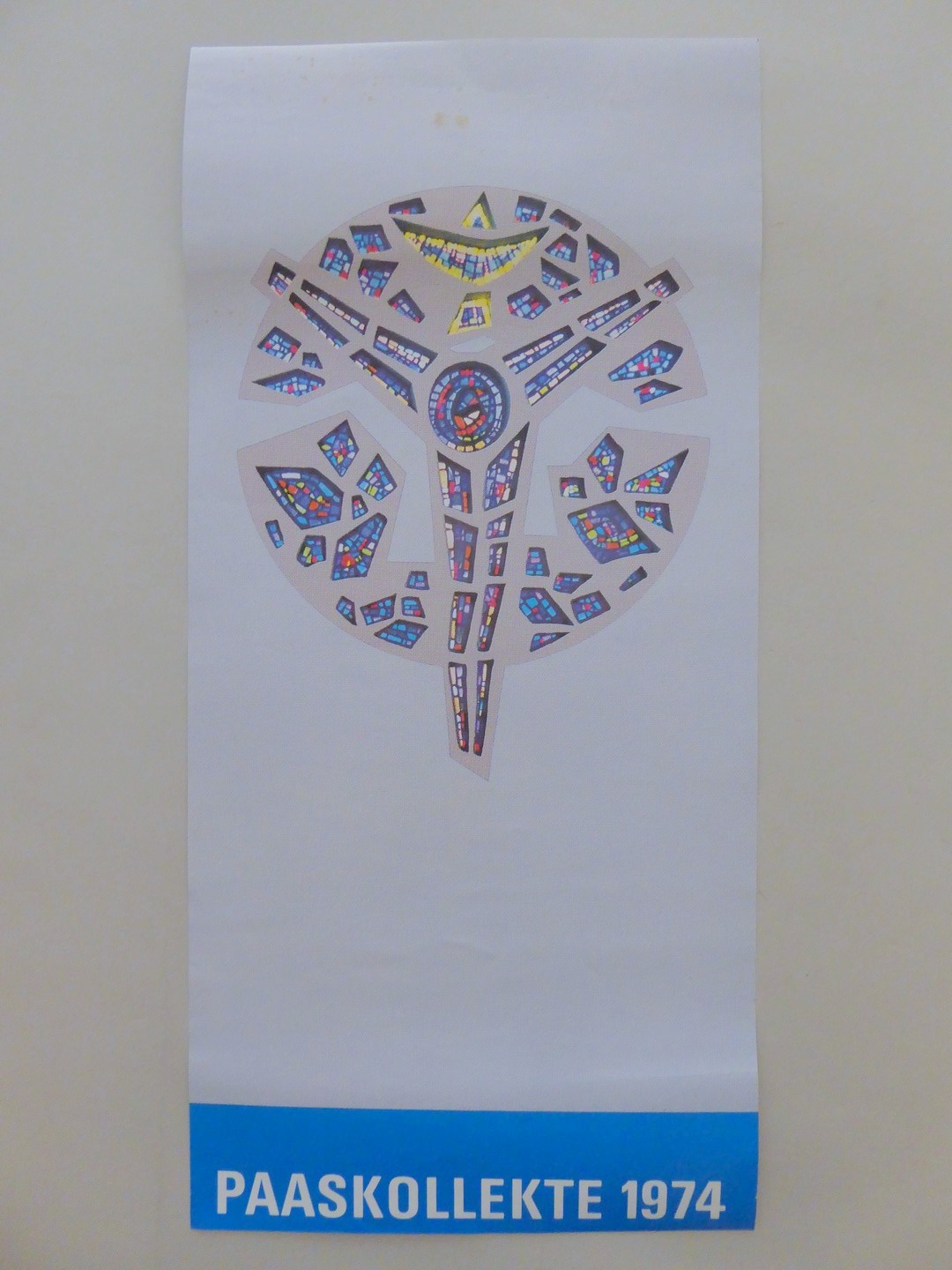 Affiche "paaskollekte 1974", met modern glasraam