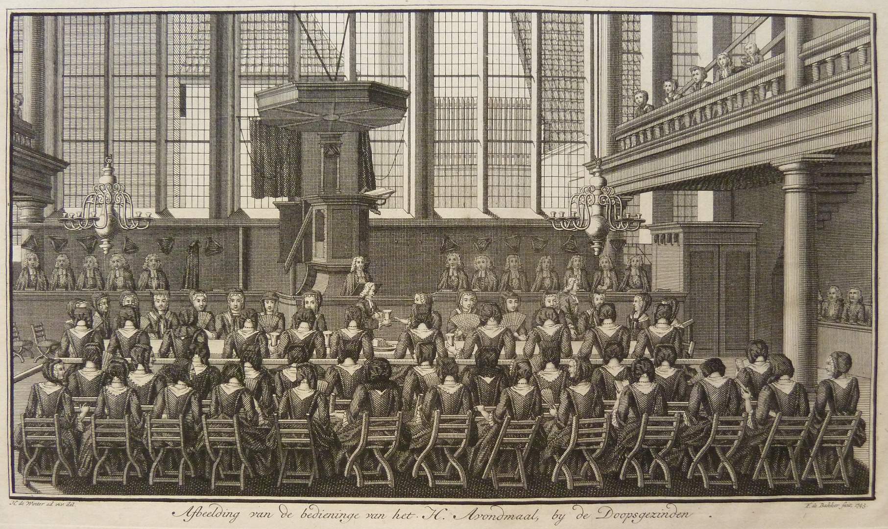 Interieur Amsterdamse kerk bij de Tooren, tijdens de bediening heilig avondmaal bij de doopsgezinden