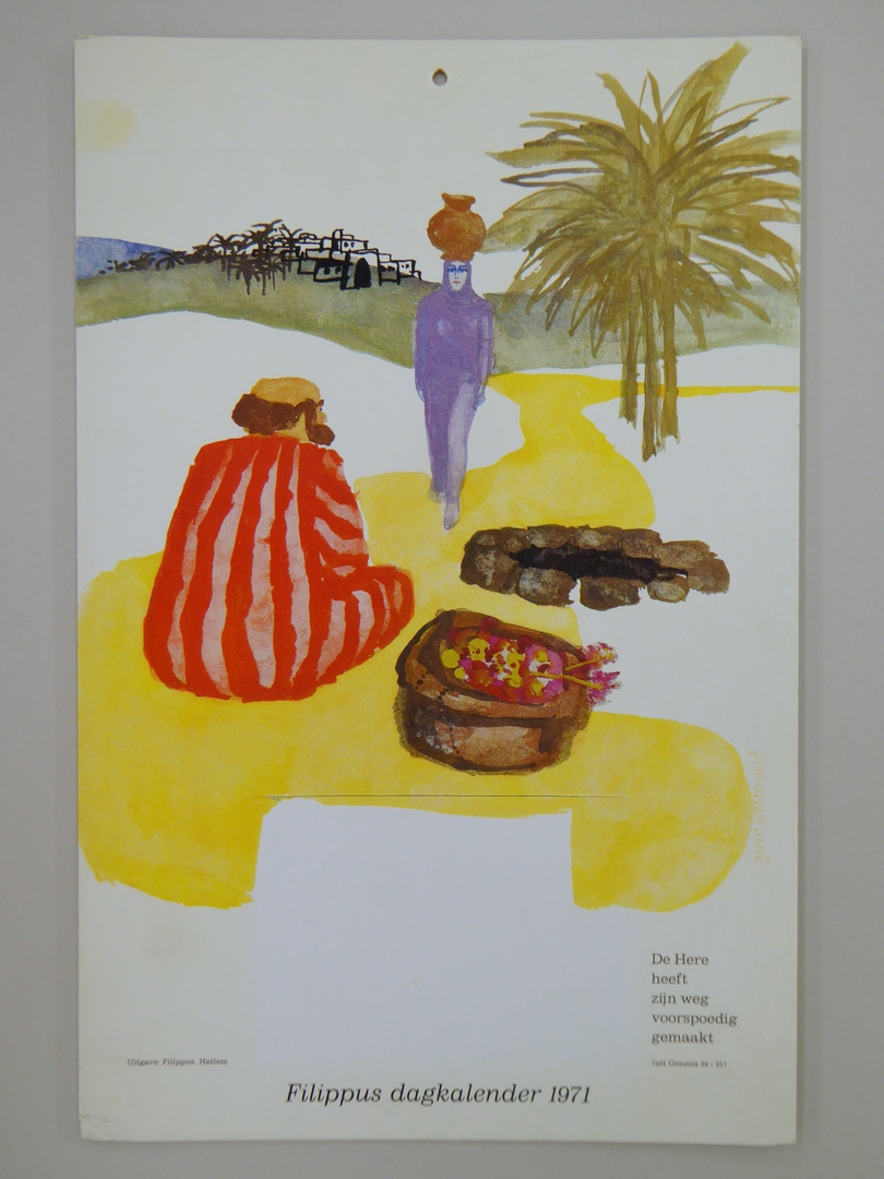 Philippus dagkalenderschild met Rebekka en knecht bij de bron