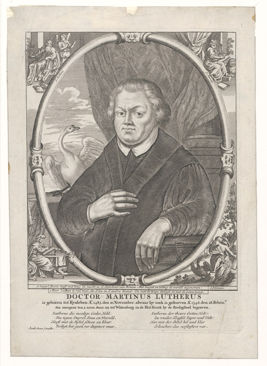 Portret van Maarten Luther (1483-1546), omringd door de vier evangelisten