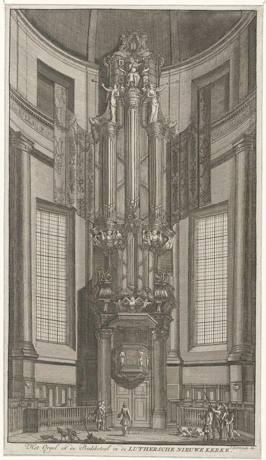 Orgel en de preekstoel in de Lutherse Nieuwe Kerk te Amsterdam