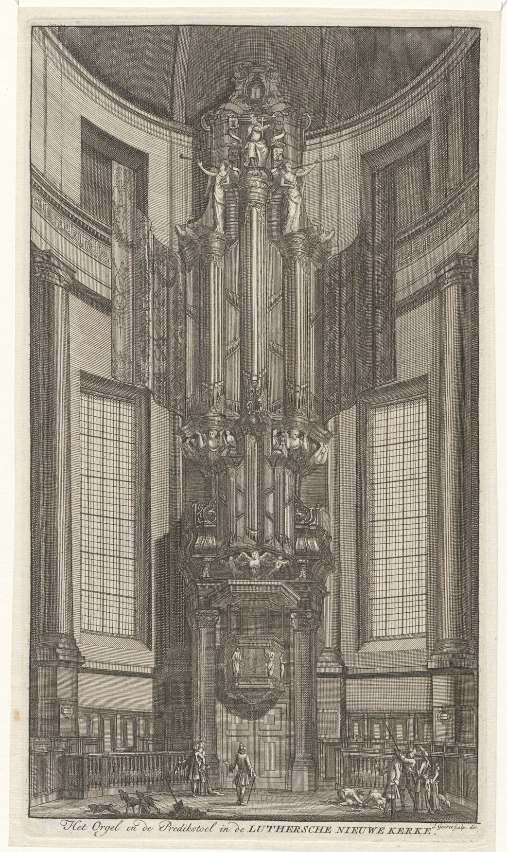 Orgel en de preekstoel in de Lutherse Nieuwe Kerk te Amsterdam