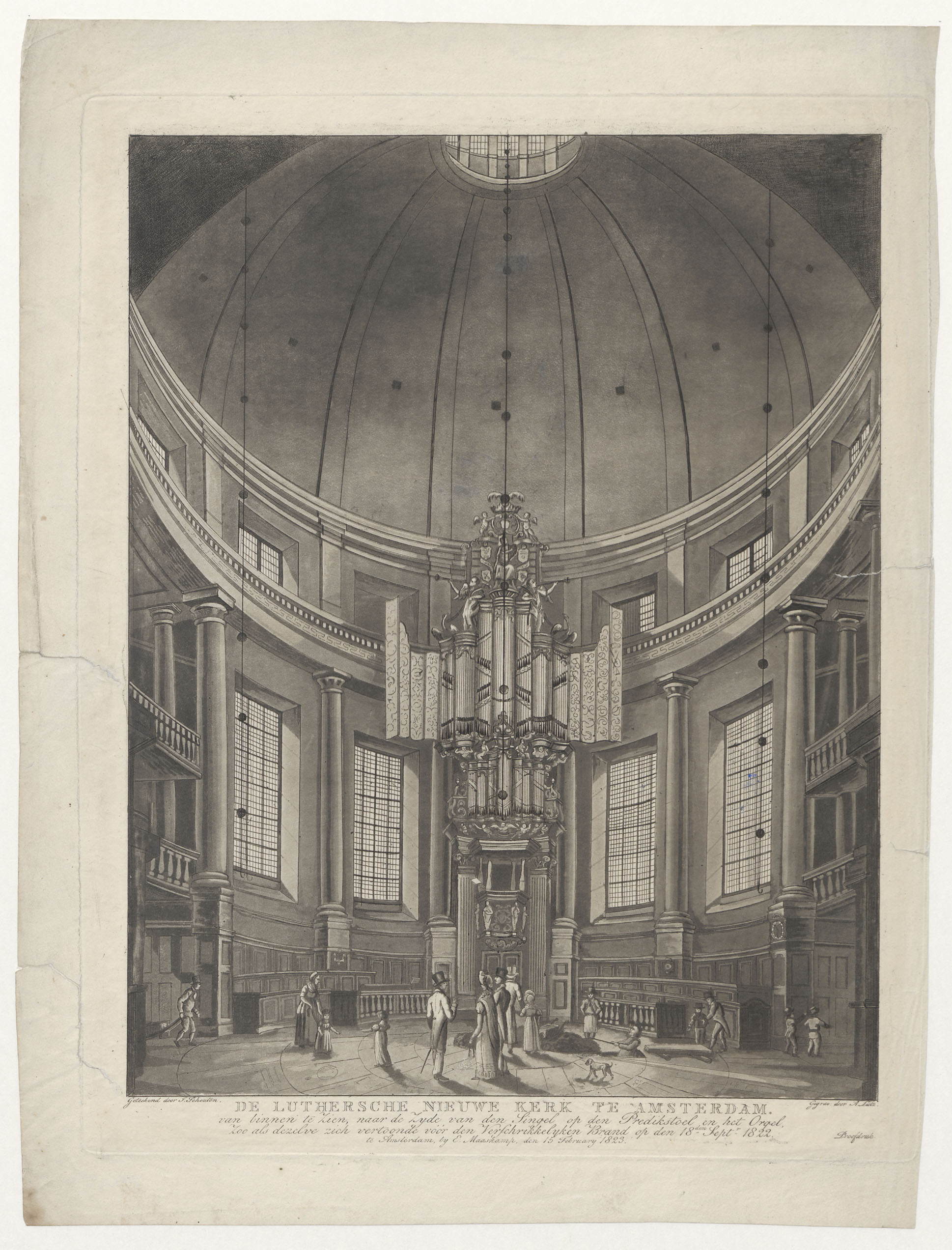 Interieur van de Lutherse Nieuwe Kerk te Amsterdam voor de brand van 1822
