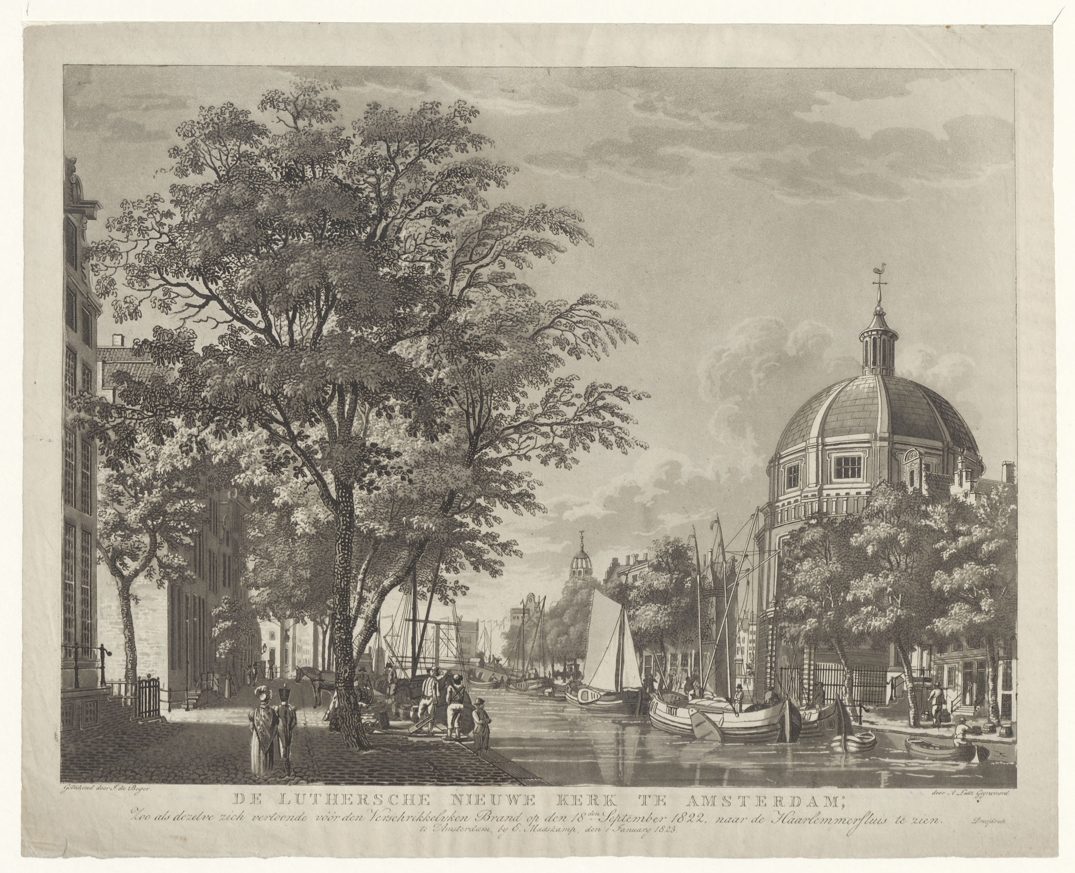 Gezicht op het Singel met de Lutherse Nieuwe Kerk te Amsterdam