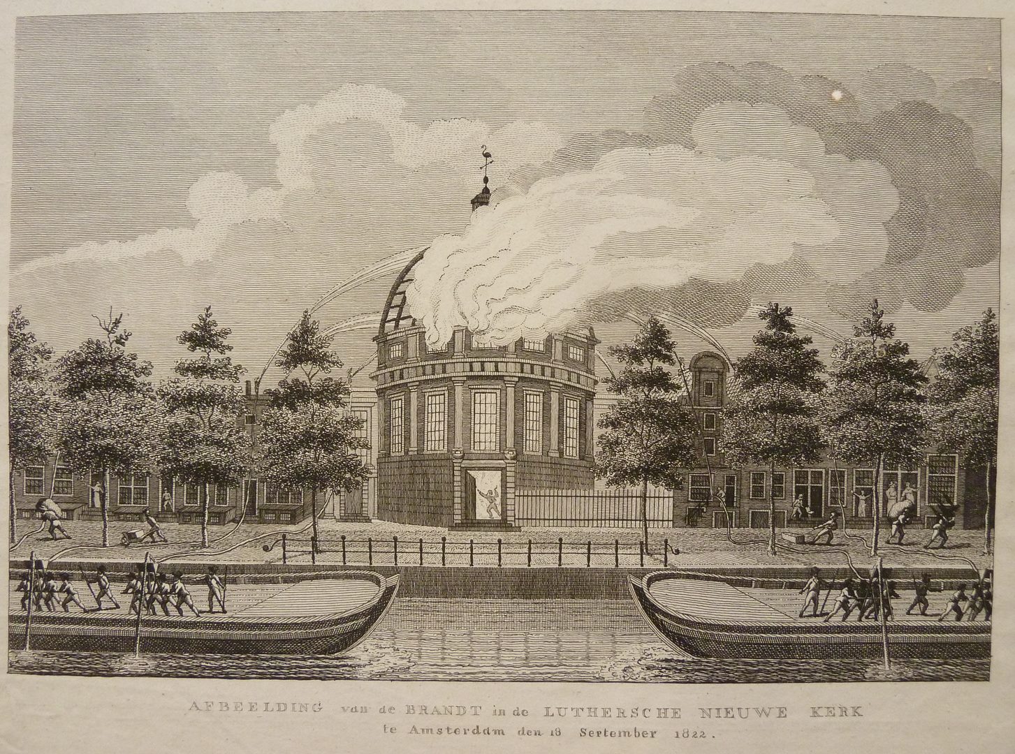 Afbeelding van de brand in de Lutherse Nieuwe Kerk
