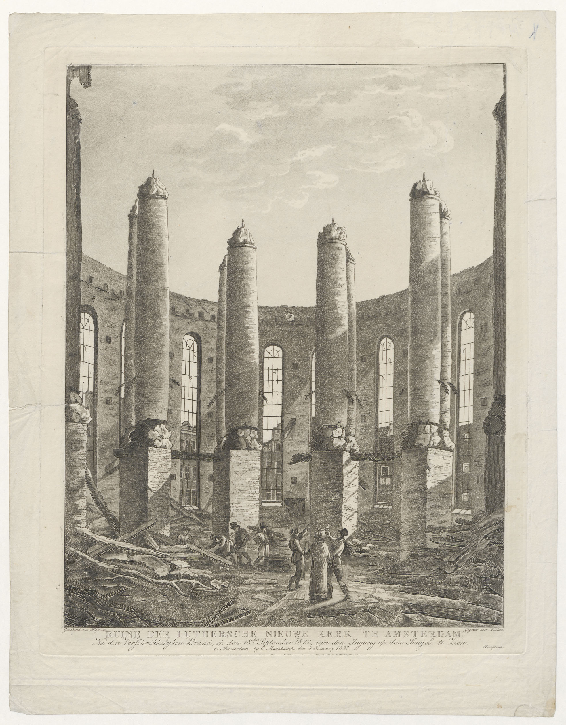 Ruïne van de Lutherse Nieuwe Kerk te Amsterdam na de brand in 1822