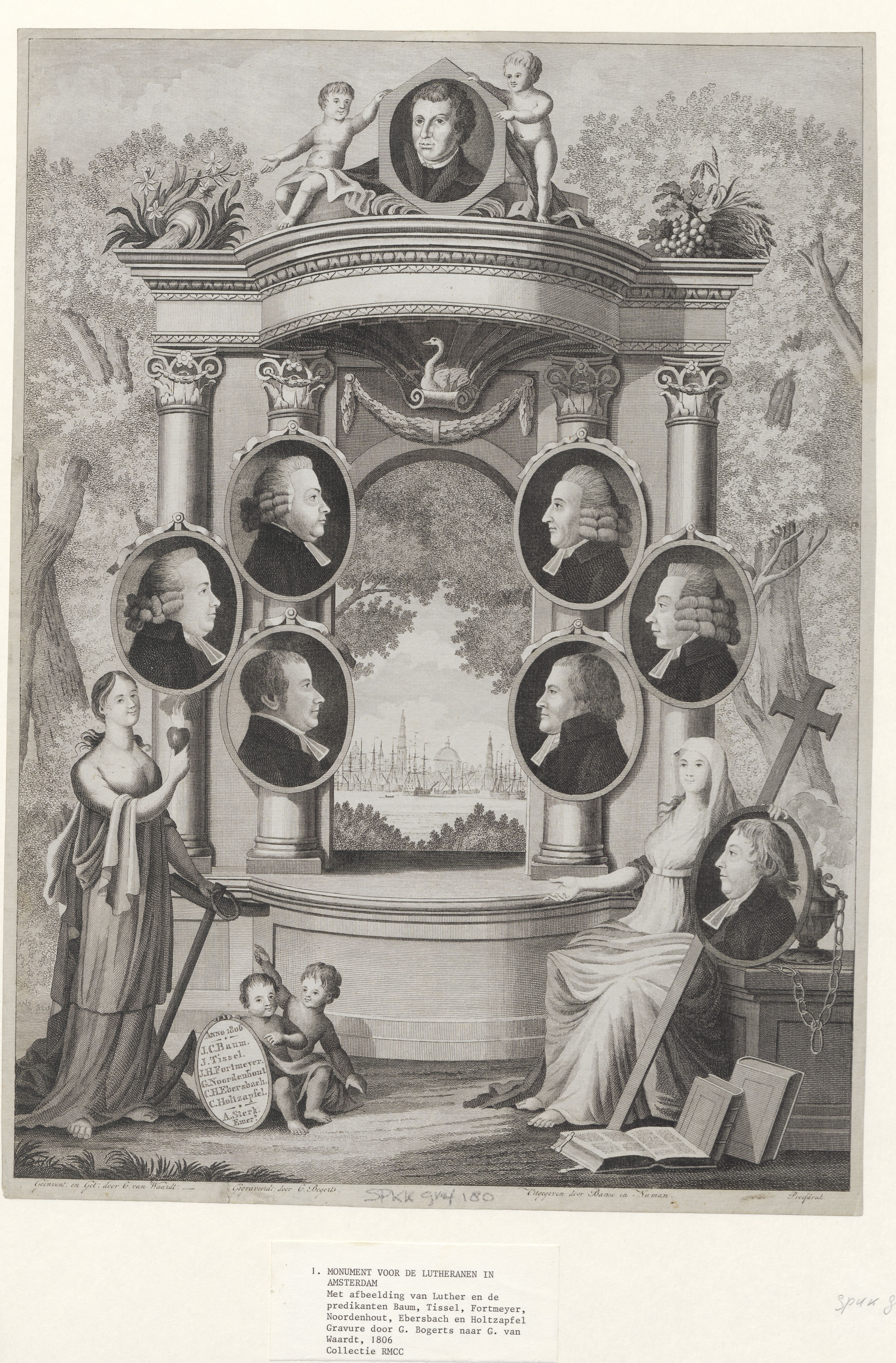 Monument voor de Lutheranen in Amsterdam met uitzicht op Amsterdam en de Lutherse Nieuwe Kerk