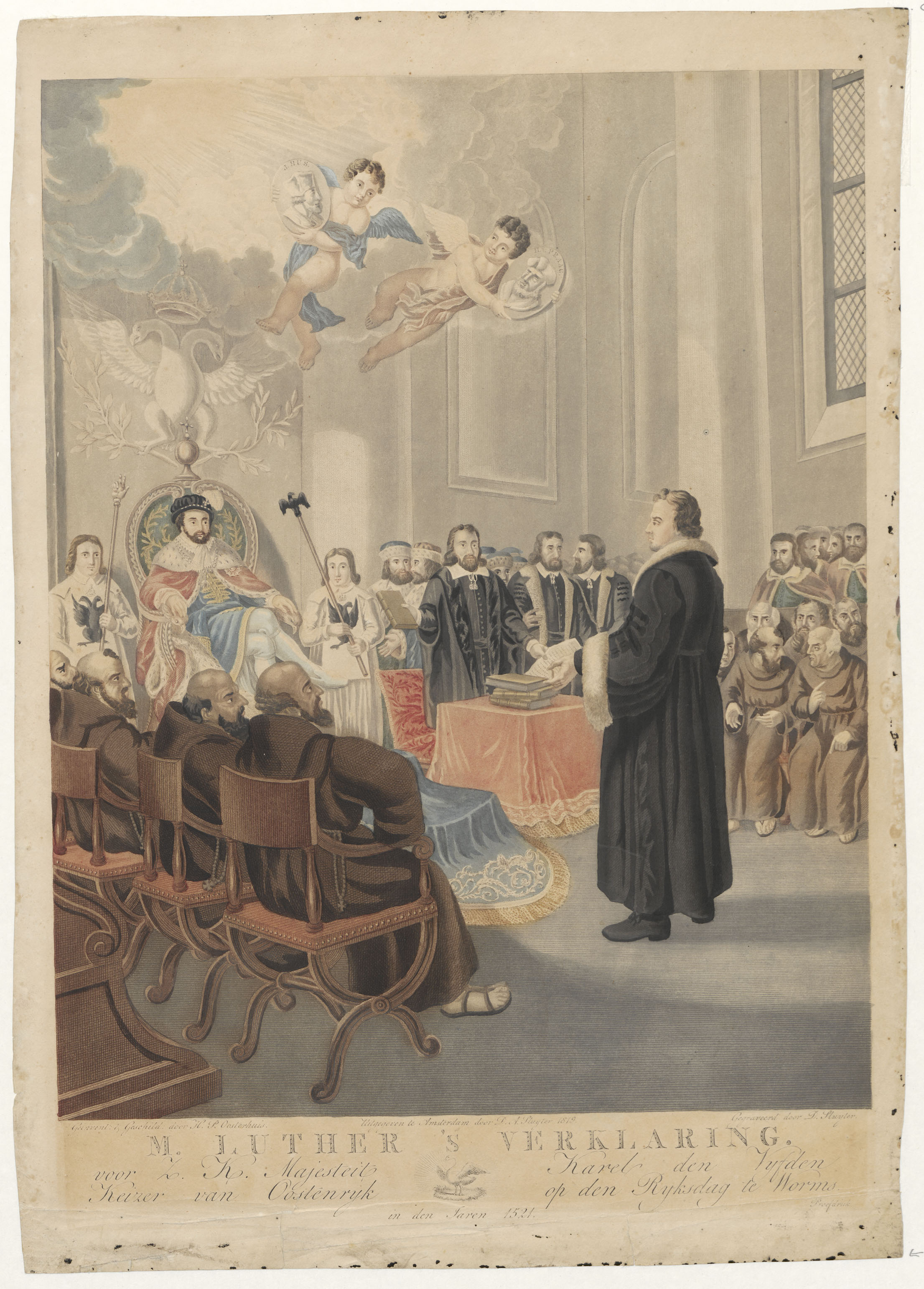Luthers verklaring voor Karel V Keizer van Oostenrijk op den Rijksdag te Worms, ingekleurd