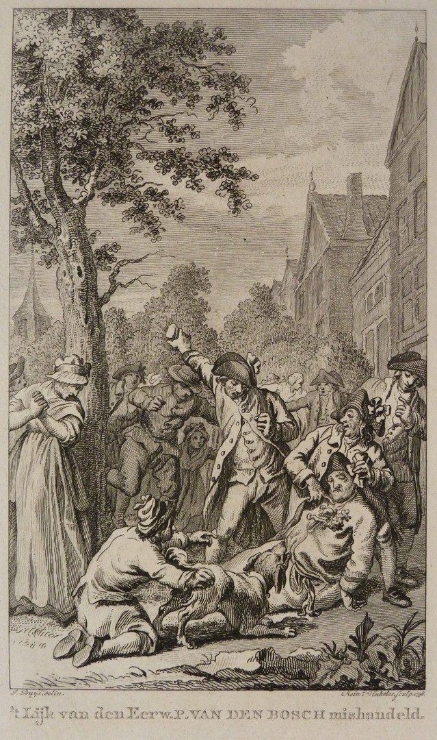 Mishandeling van het lijk van de remonstrantse patriotse predikant P. van den Bosch (ca.1732-1787)