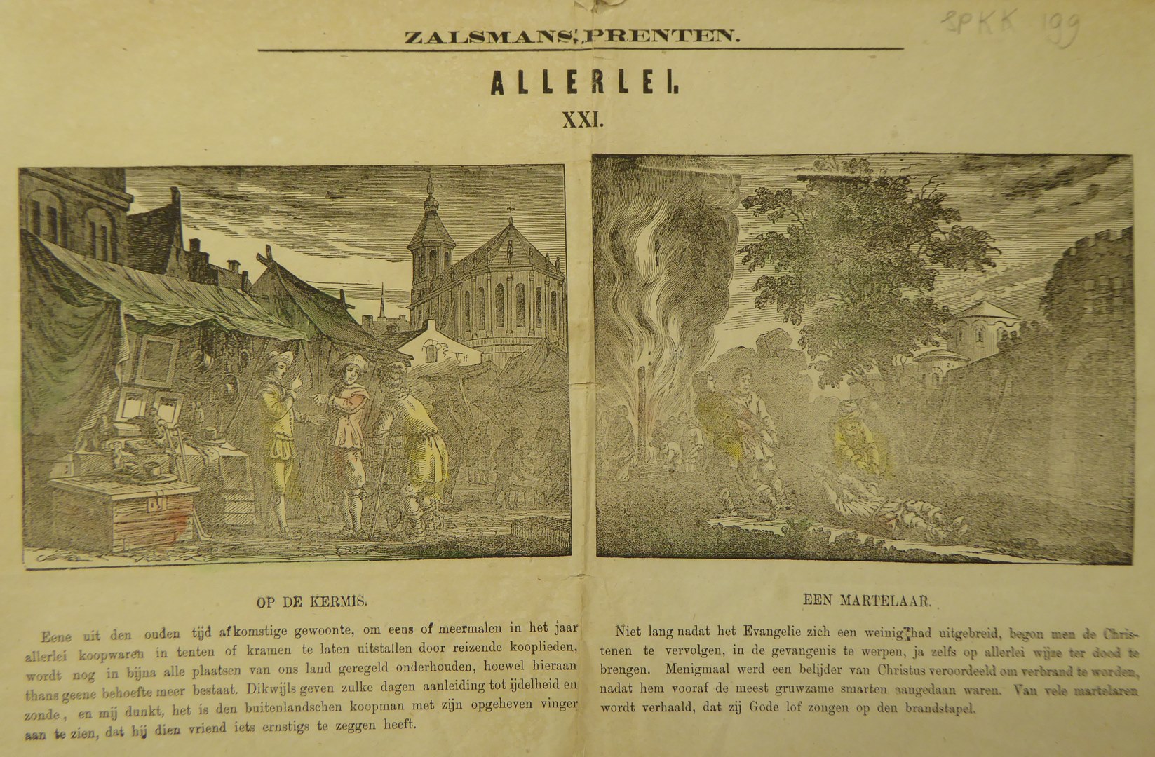 Zalsmans prenten: Allerlei XXI, Op de kermis, Een martelaar, Mijn Zoon! geef mij ..., ingekleurd