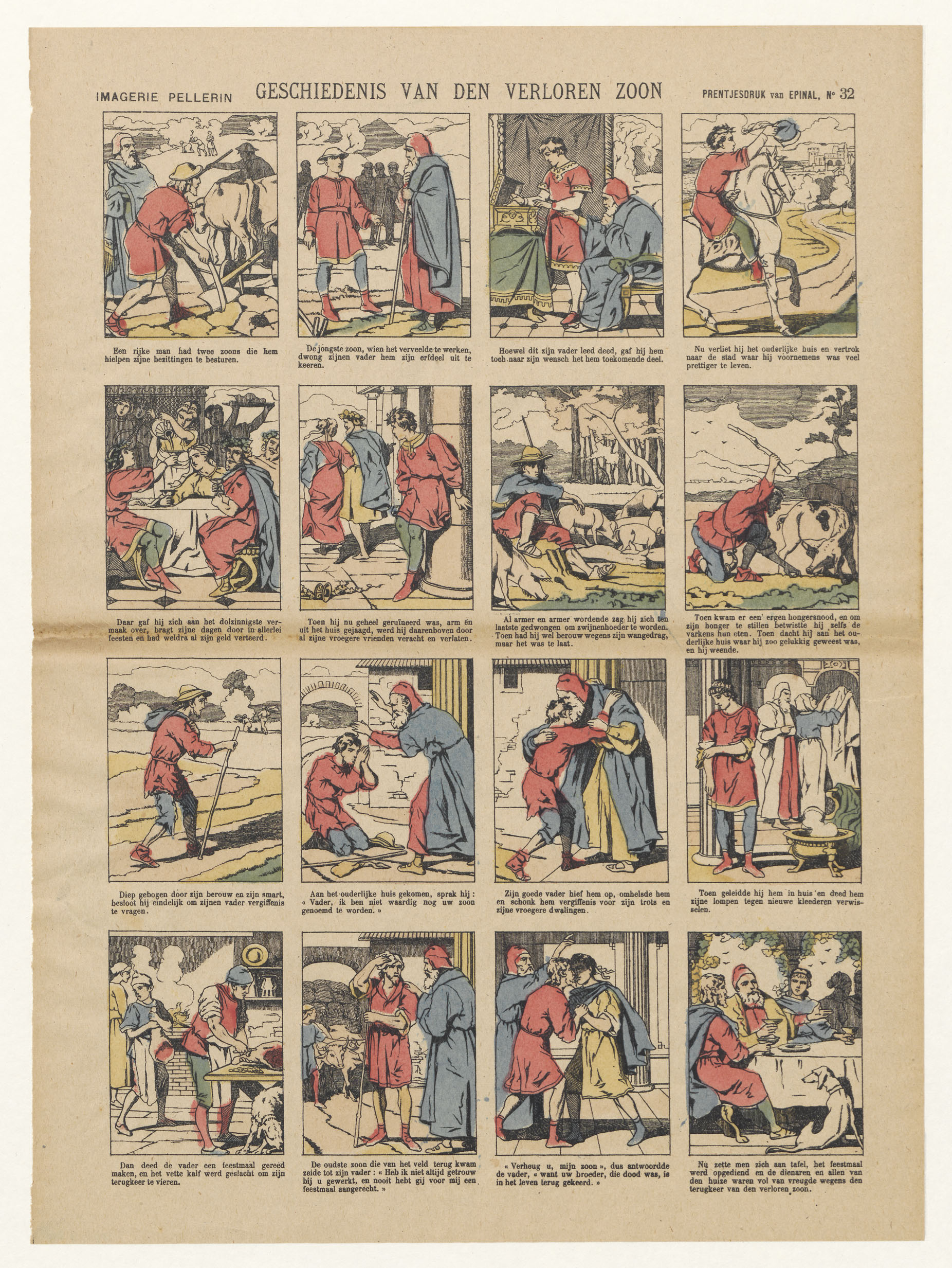 16 prentjes met de geschiedenis van de verloren zoon, nr. 32, kleur