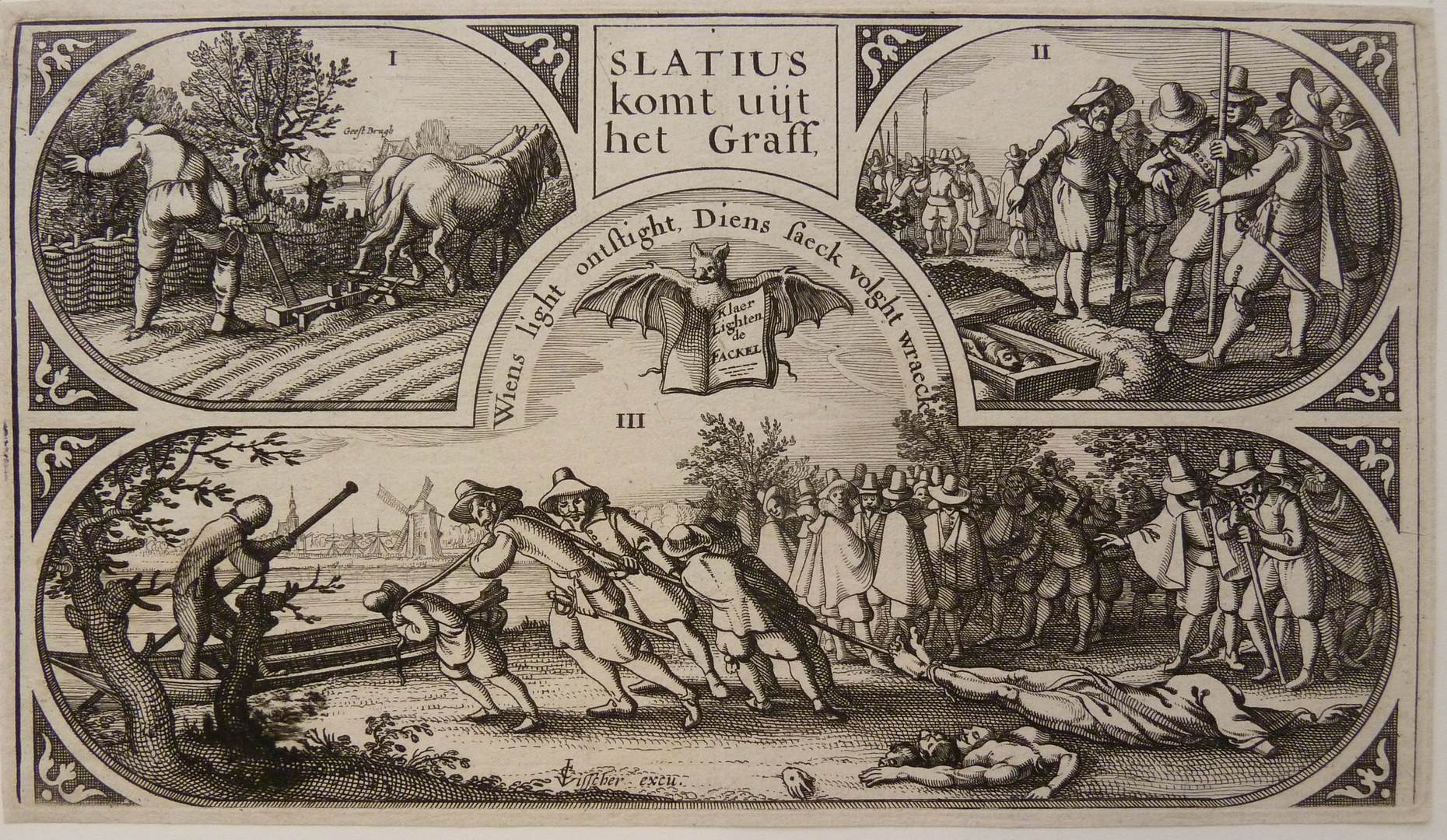 Slatius komt uyt het graf (en vaert op daer hij voer aff), bovenste helft van prent