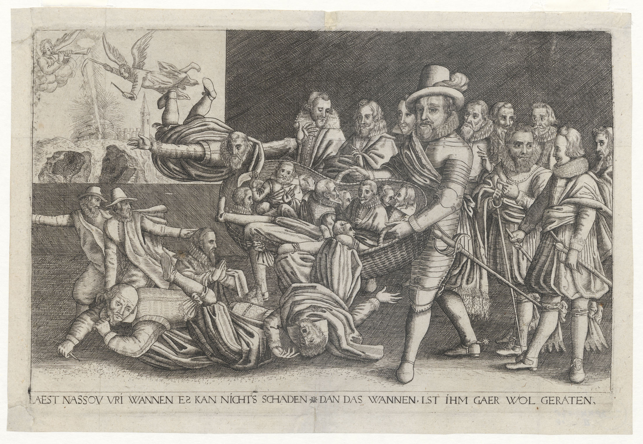 "Laest Nassau vri wannen...", spotprent op Oldenbarnevelt