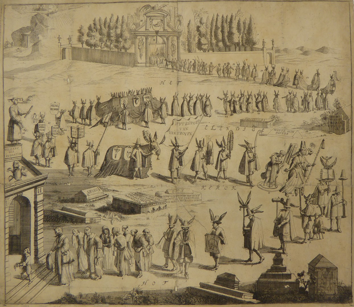 Zinneprent op de twist tussen voetiaan A. v.d. Velde en coccejaan Momma