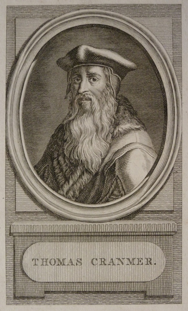 Borstbeeld naar links, aanziend, met baret. In ovaal met onderschrift: 'Thomas Cranmer.'.