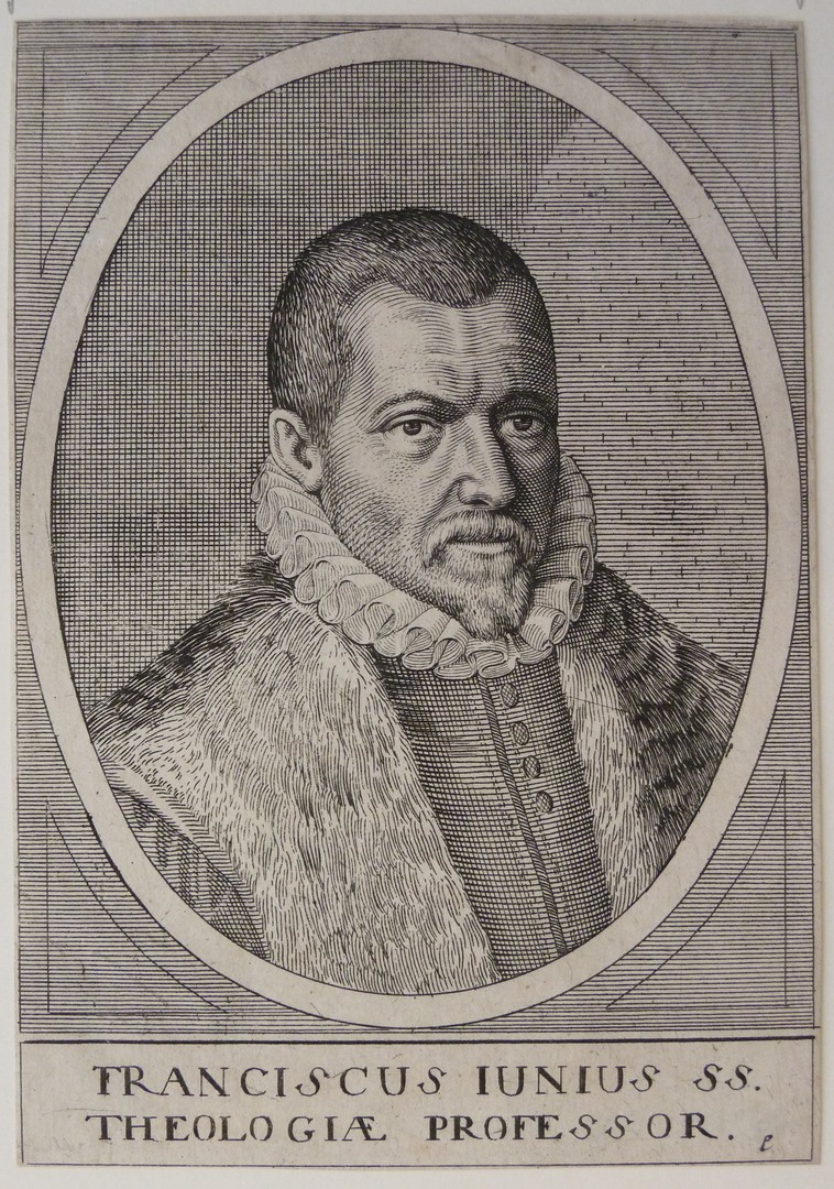 Borstbeeld naar rechts, met met bont gevoerde tabbaard, gepijpte plooikraag en kort haar. In ovaal met tweeregelig onderschrift: 'Franciscus Iunius SS. Theologiae Professor'. R.o. 'l'.