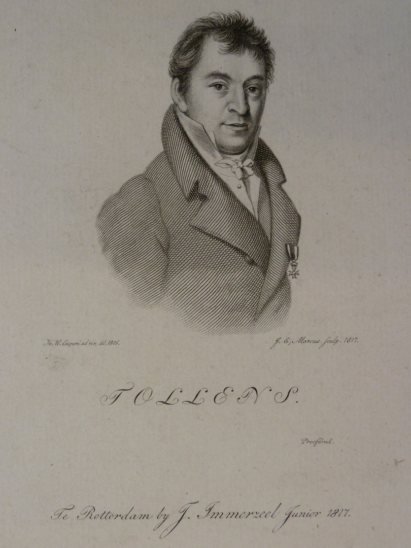 Borstbeeld naar rechts, aanziend, in kostuum, met ridderorde. Onderschrift: 'Tollens'.