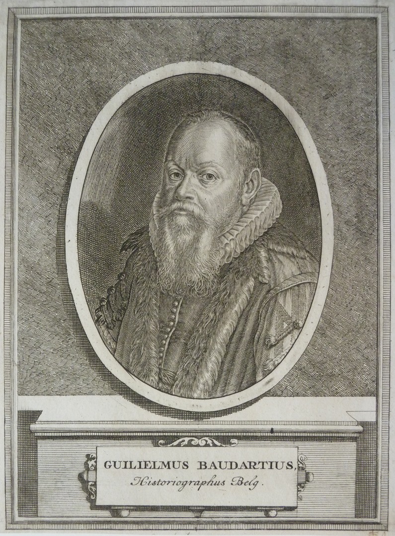 Borstbeeld naar links. In ovaal met tweeregelig onderschrift: 'Guilelmus Baudartius'.