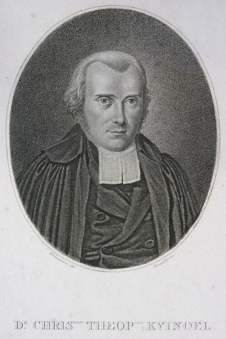 Borstbeeld van voren. In ovaal met onderschrift: 'Dr. Chris. Theop. Kvinoel'.