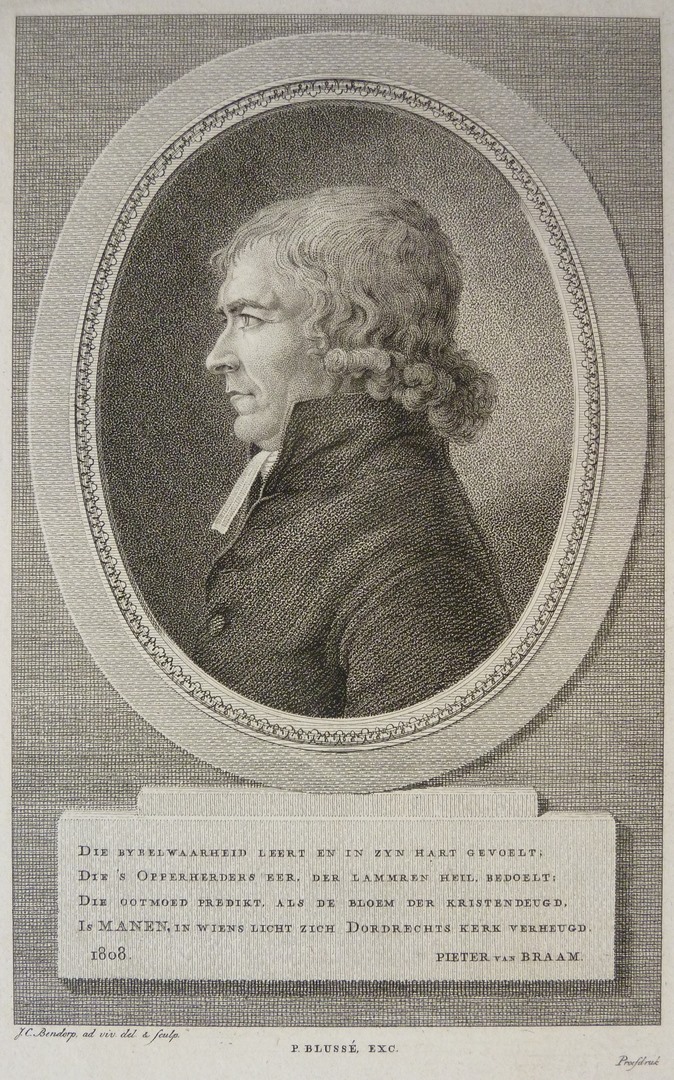 Borstbeeld naar links, en profil. In ovaal met vierregelig onderschrift: 'Die bybelwaarheid...'.