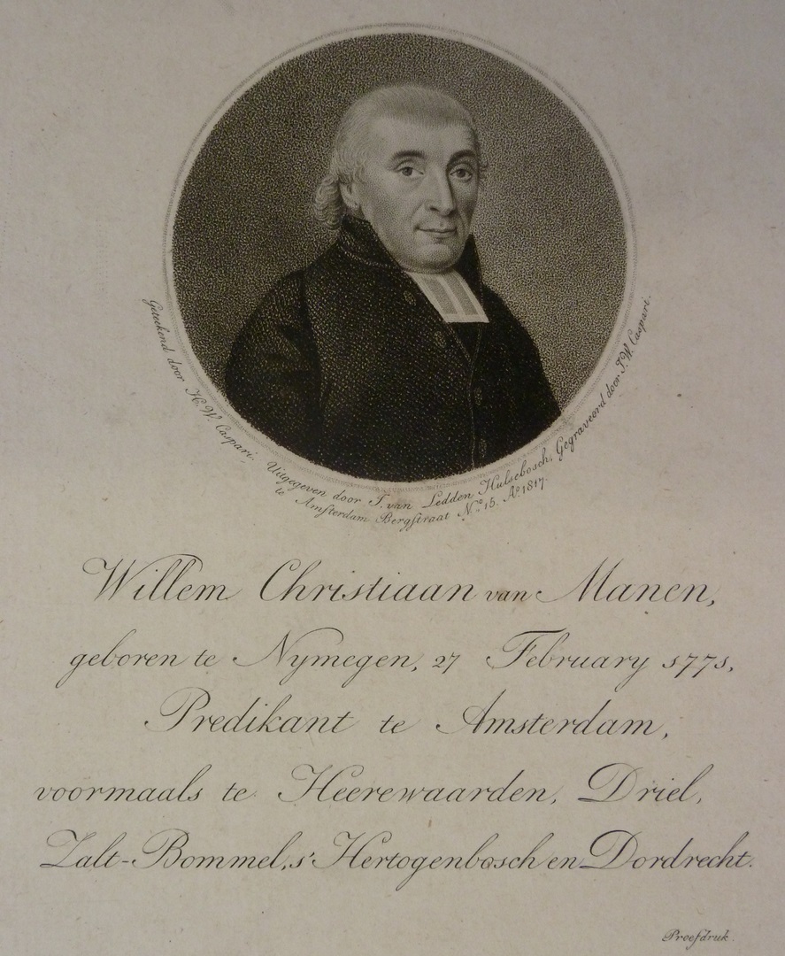 Portret van Willem Christiaan van Manen (1771-1882), predikant te Heerwaarden, Zaltbommel, Den Bosch