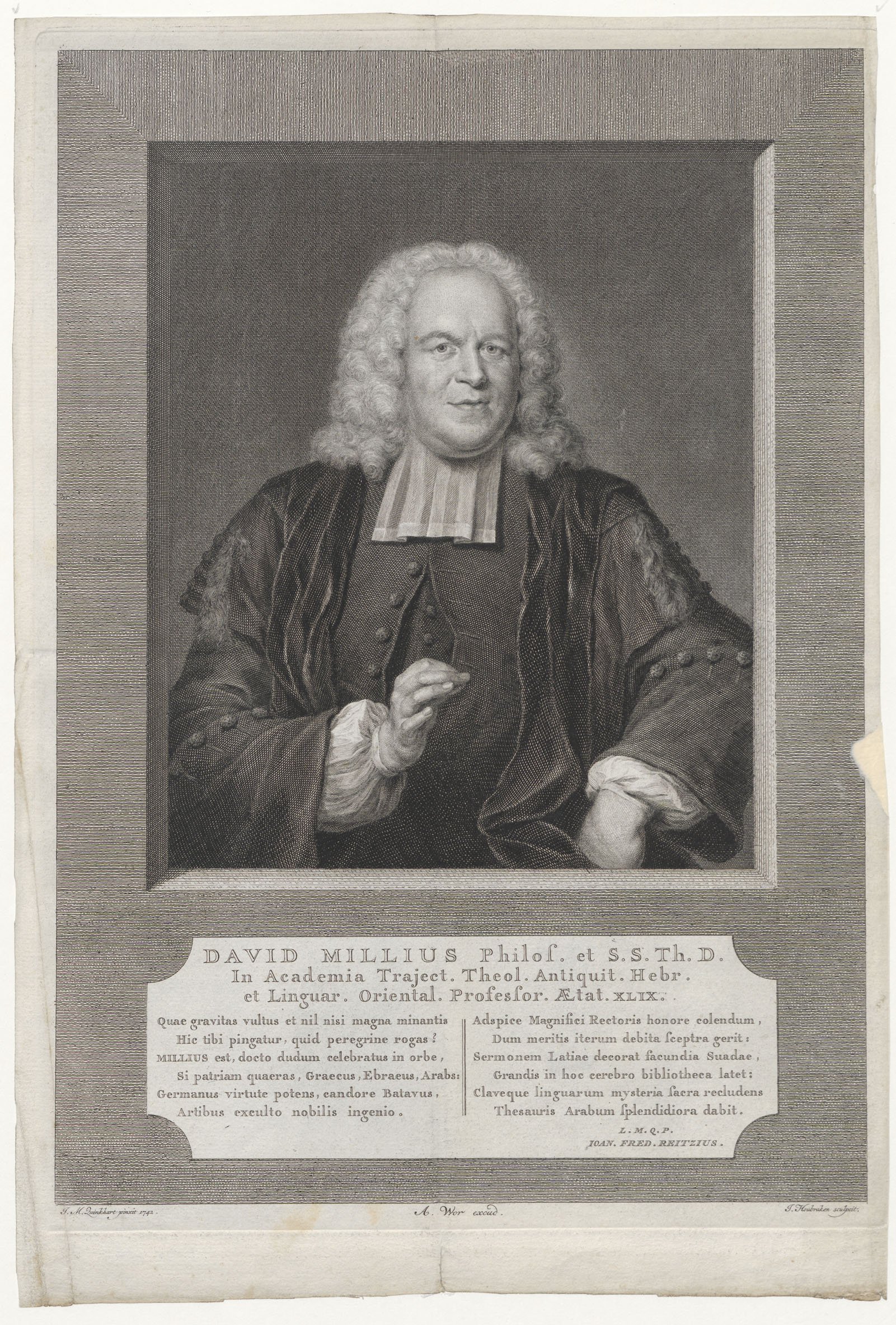 Portret van David Millius (1692-1756), theoloog te Utrecht, hoogleraar Oosterse talen, heilige oudheden en theologie