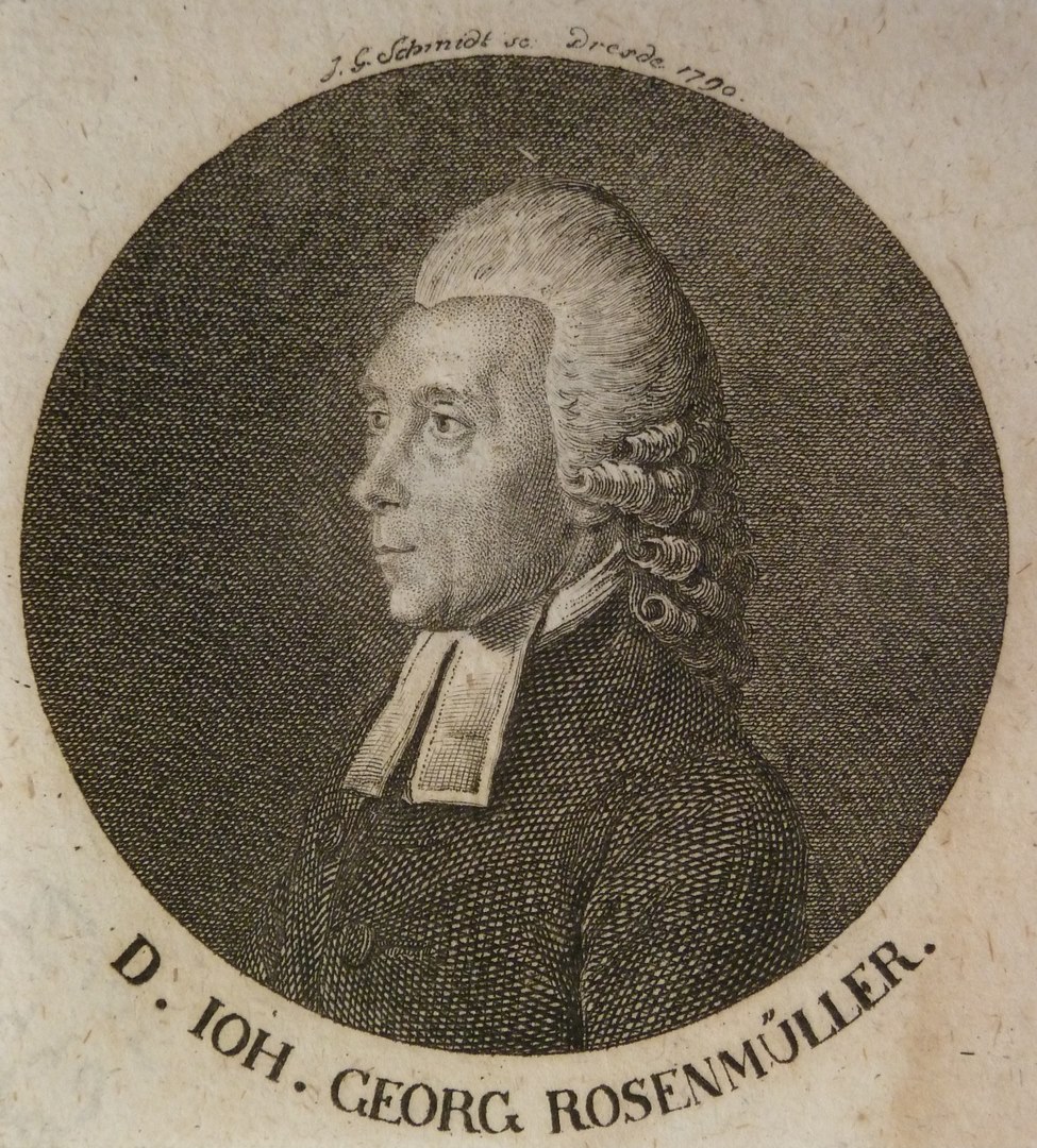 Borstbeeld naar links in medaillon. Met onderschrift: 'D. Joh. Georg. Rosenmüller'.