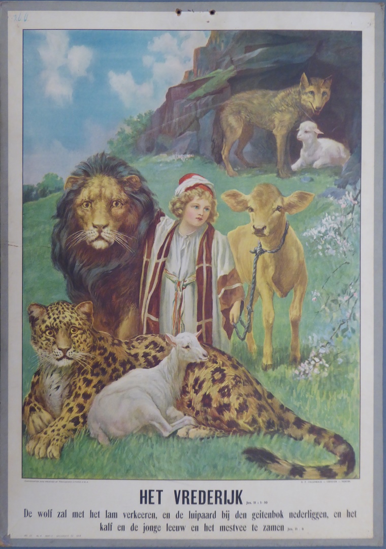 Schoolplaat met "Het Vrederijk (Jes.11:1-10)"