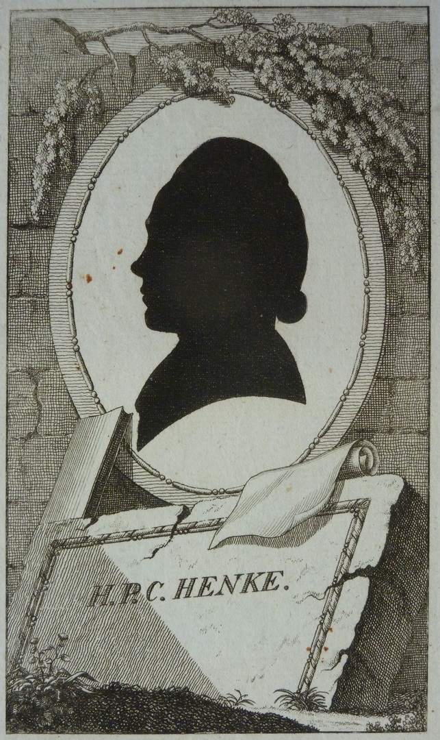 Silhouet en profil. In ovaal met randwerk en onderschrift : 'H.P.C. Henke'.
