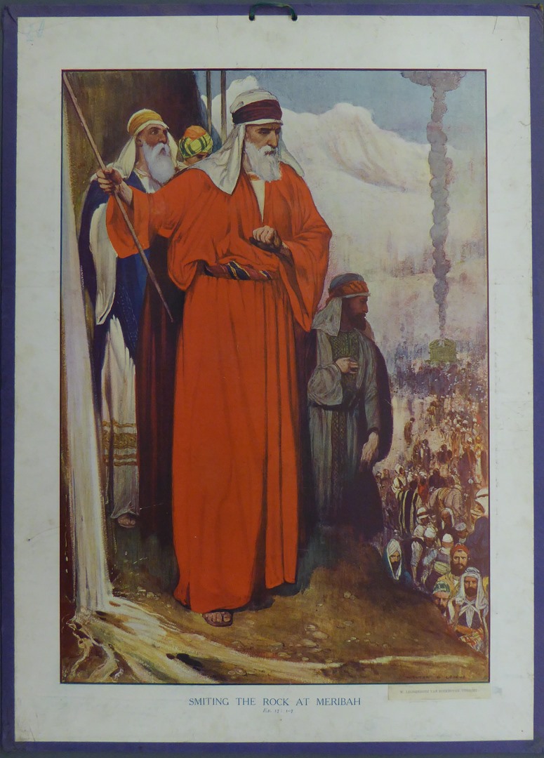 Mozes slaat op de rots te Meriba (Ex.17:1-7)