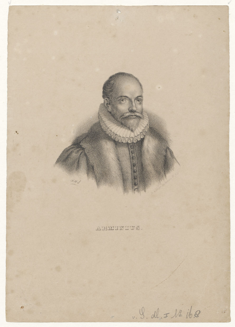 Borstbeeld naar rechts. Met eenregelig onderschrift: 'Arminius'.