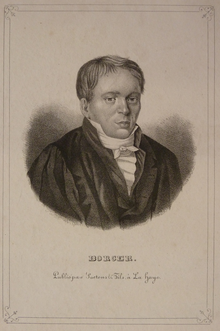 Borstbeeld naar rechts. In een kader. Eénregelig onderschrift: 'Borger'en de tekst 'Publié par Soetens & Fils à La Haye'.