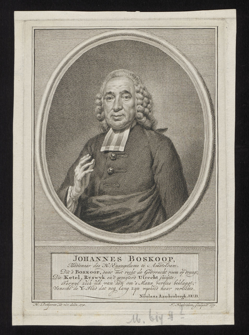 Portret van Johannes Boskoop (1714-1772), predikant te Ketel, Rijswijk, Utrecht en Amsterdam