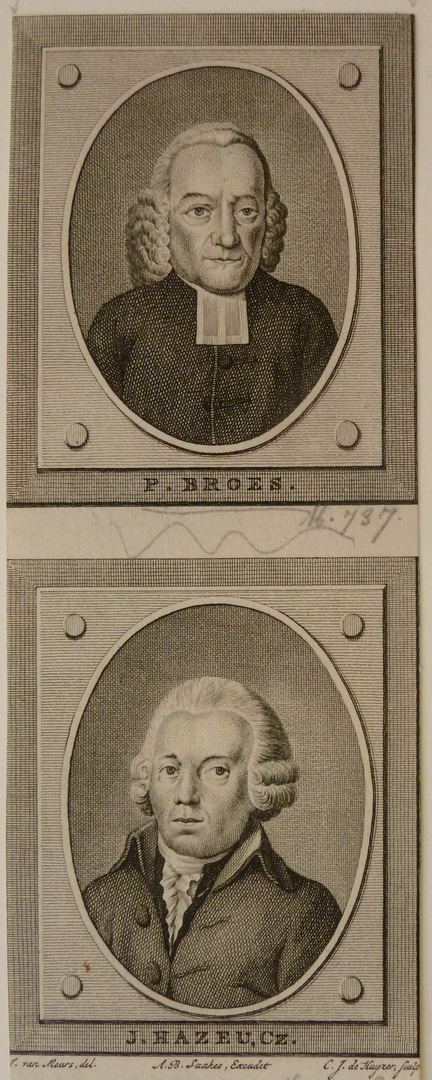 Portret van Petrus Broes (1726-1792), predikant en van J. Hazeu (1754-1835), schrijver en uitgever