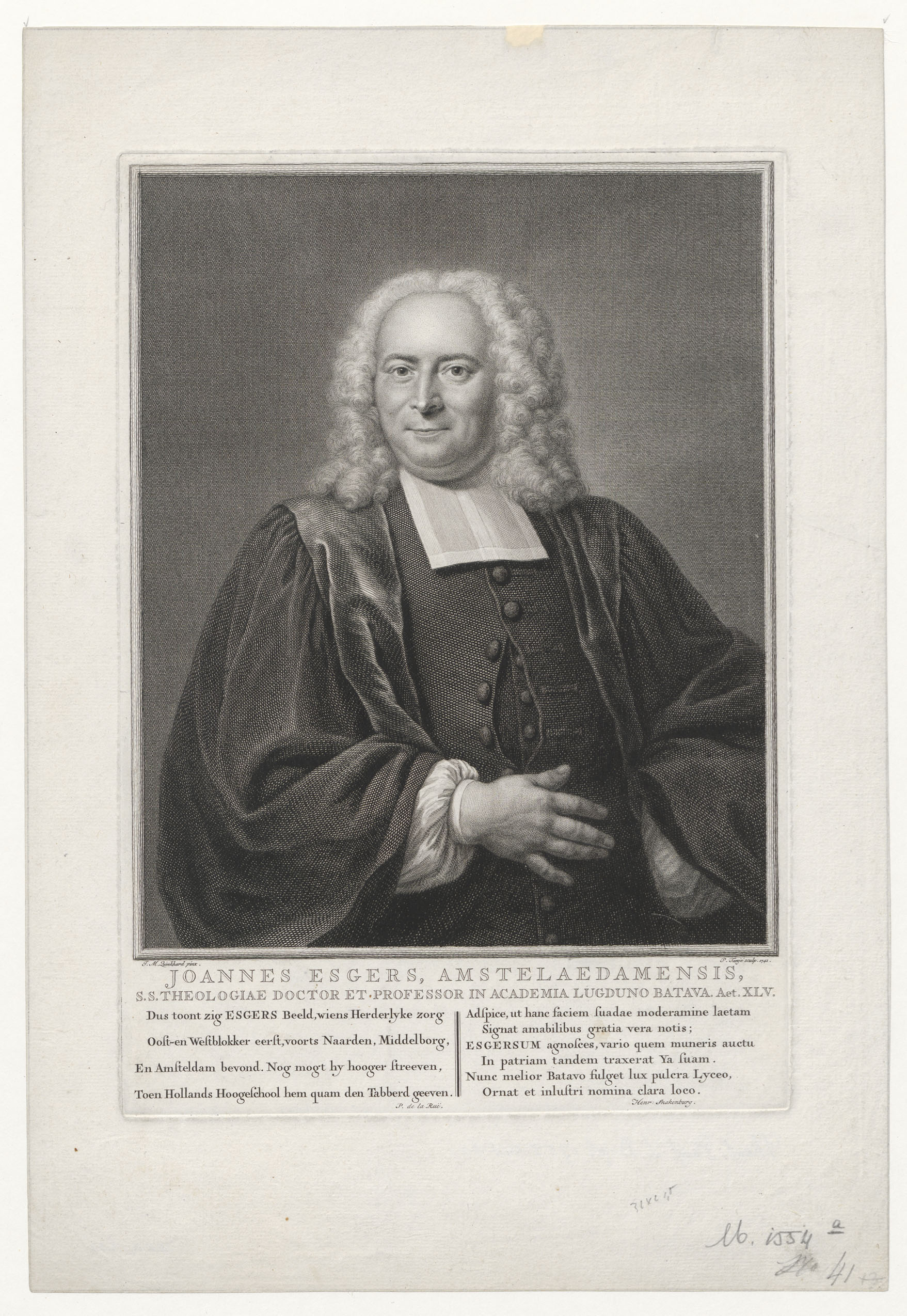 Portret van Joannes Esgers (1696-1755), predikant te Blokker, Naarden, Middelburg, Amsterdam, hoogleraar te Leiden