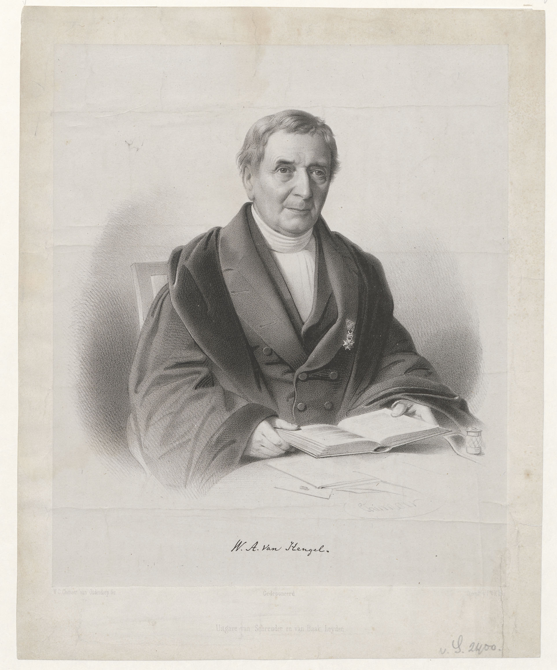 Portret van Wessel Albertus van Hengel (1779-1871), predikant te Grootebroek, hoogleraar te Franeker