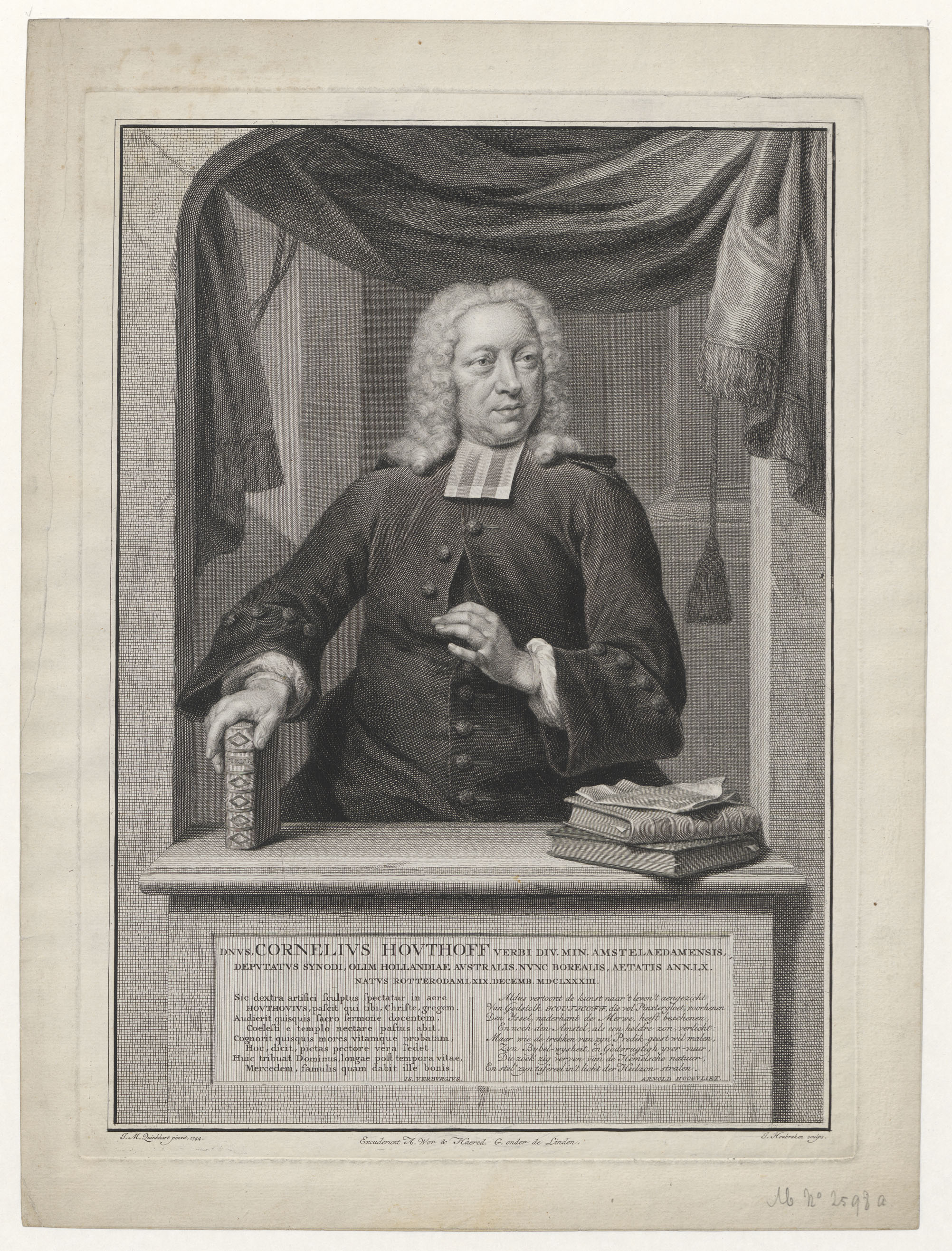 Portret van Cornelius Houthoff (1683-1752), predikant te Amsterdam, enz.