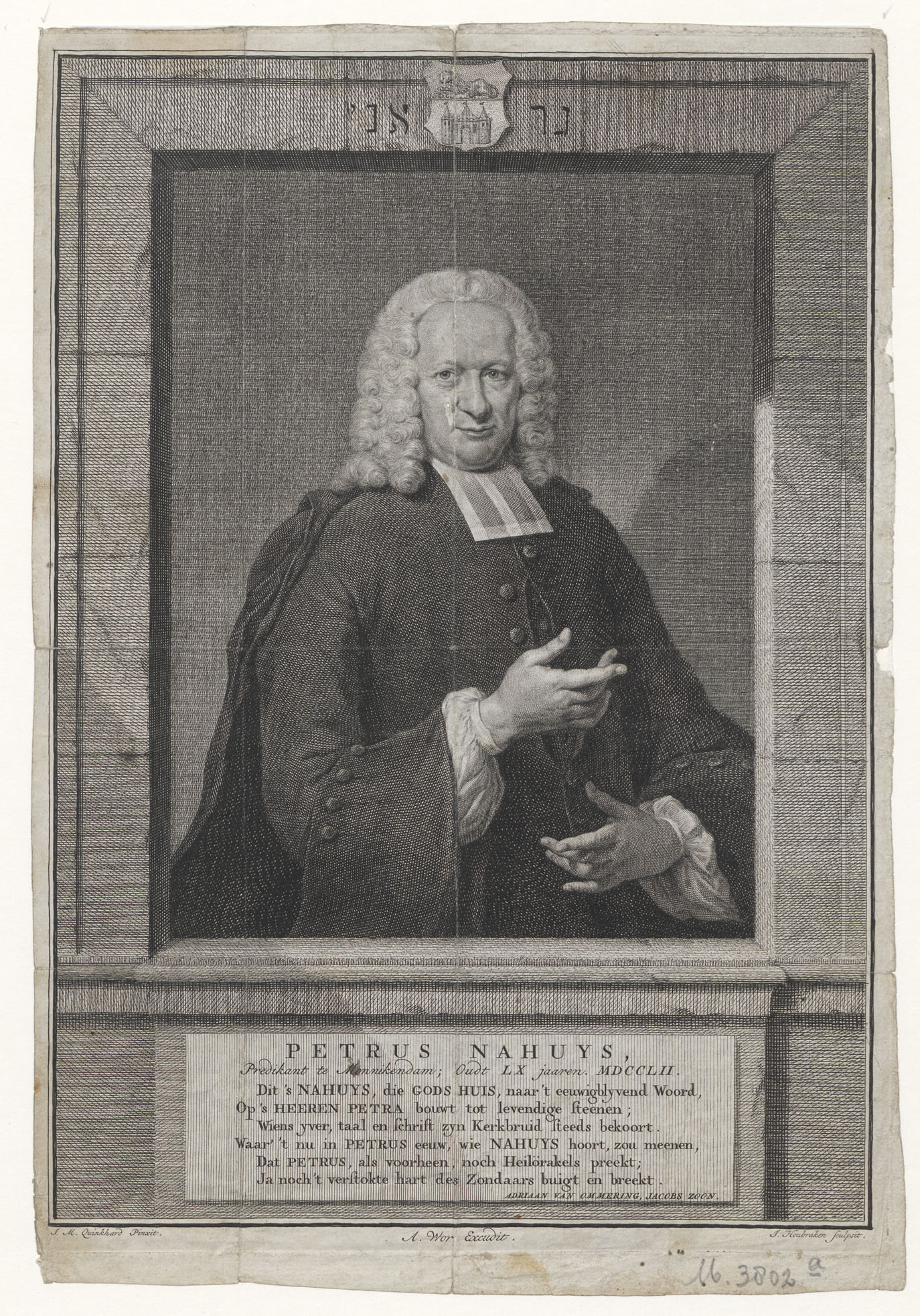 Portret van Petrus Nahuys (1692-1766), predikant te Monnikendam
