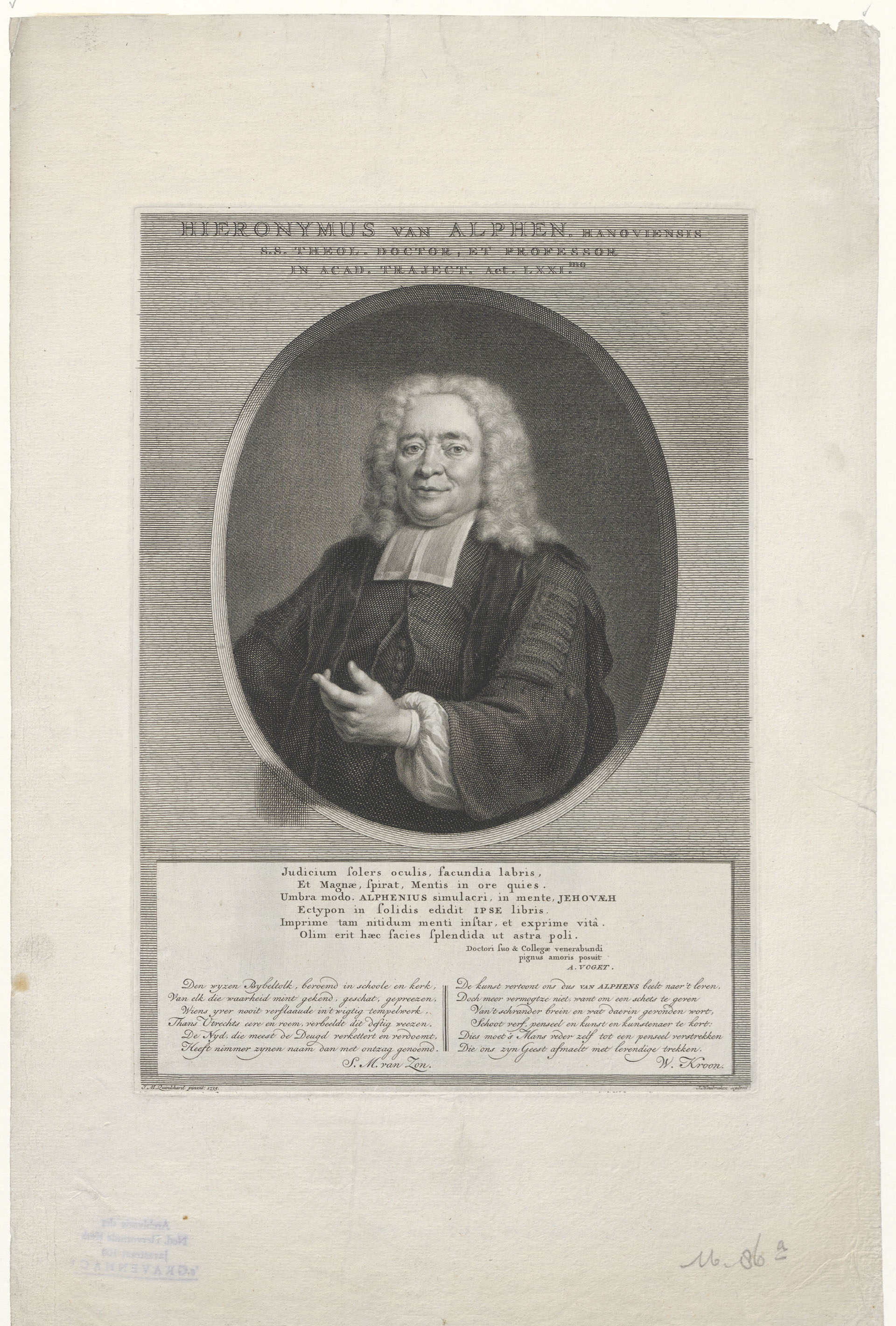 Portret van Hieronymus Simons van Alphen (1665-1742), hoogleraar in de theologie te Utrecht
