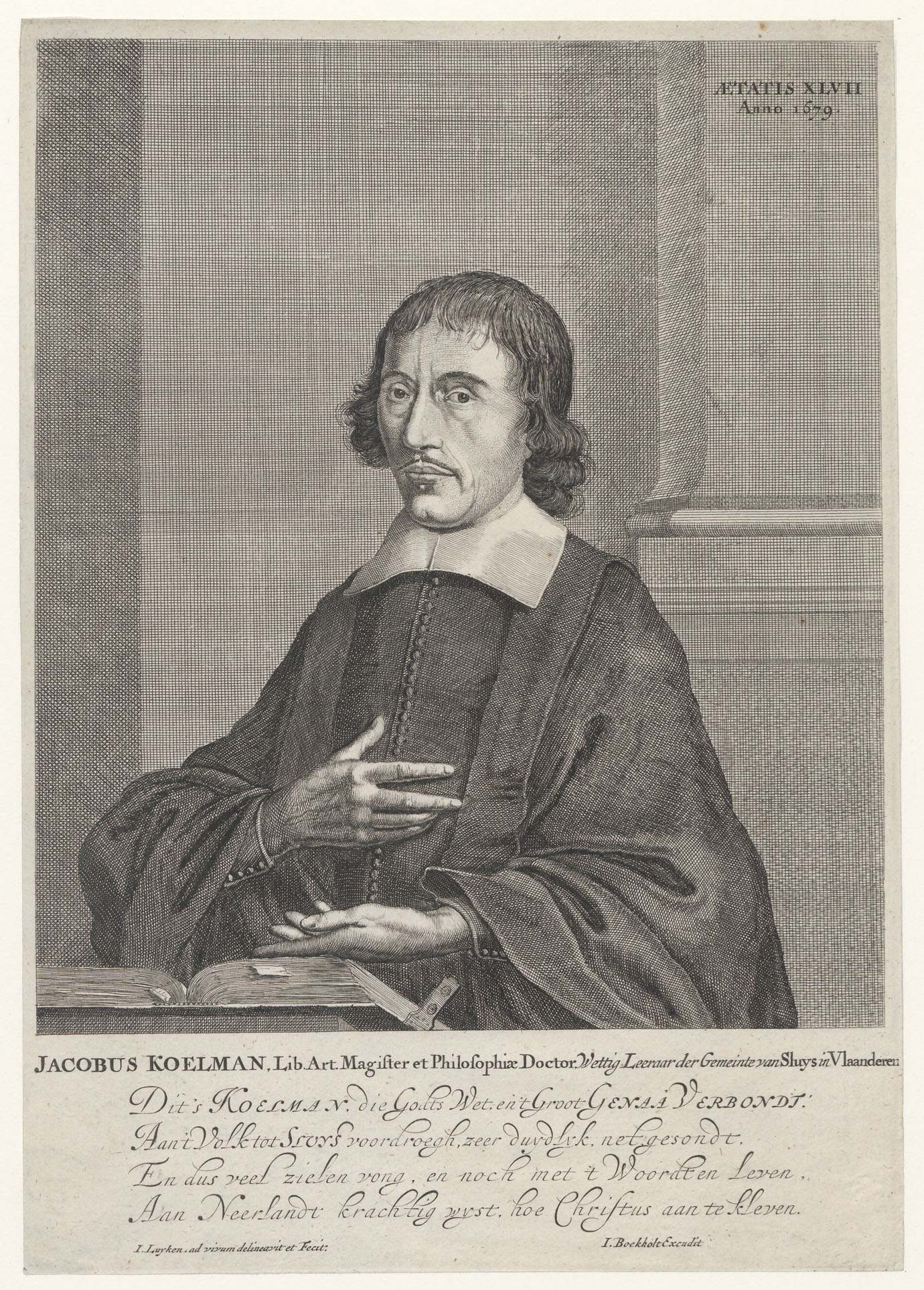Portret van Jacobus Koelman (1631-1695), doctor in de filosofie, hervormd predikant te Sluis