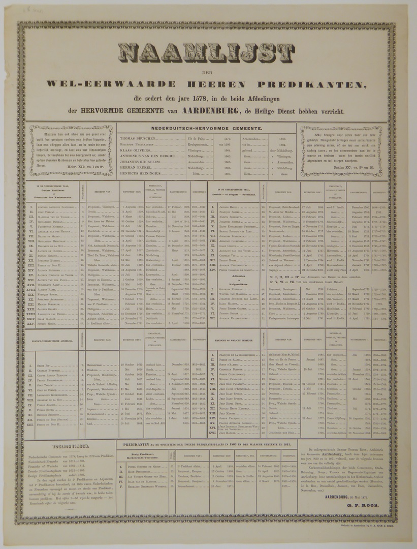 Naamlijst van predikanten die sedert 1578 in de herv. gemeente Aardenburg dienst hebben gedaan