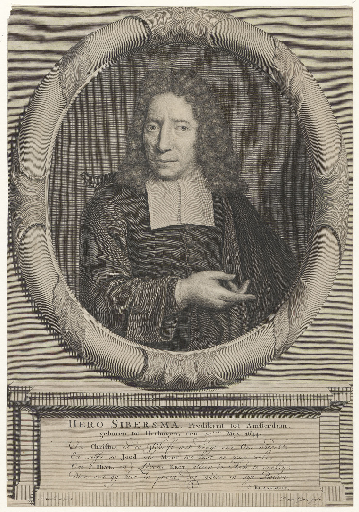 Portret van Hero Sibersma (1644-1728), predikant te Amsterdam en auteur