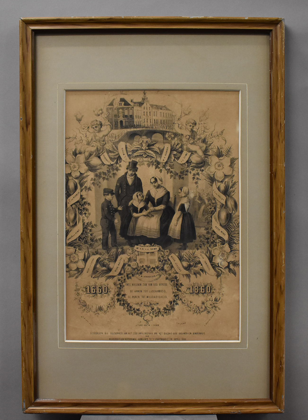 Prent 200-jarig bestaan van het Diaconie Oude Vrouwen- en Kinderhuis Den Haag