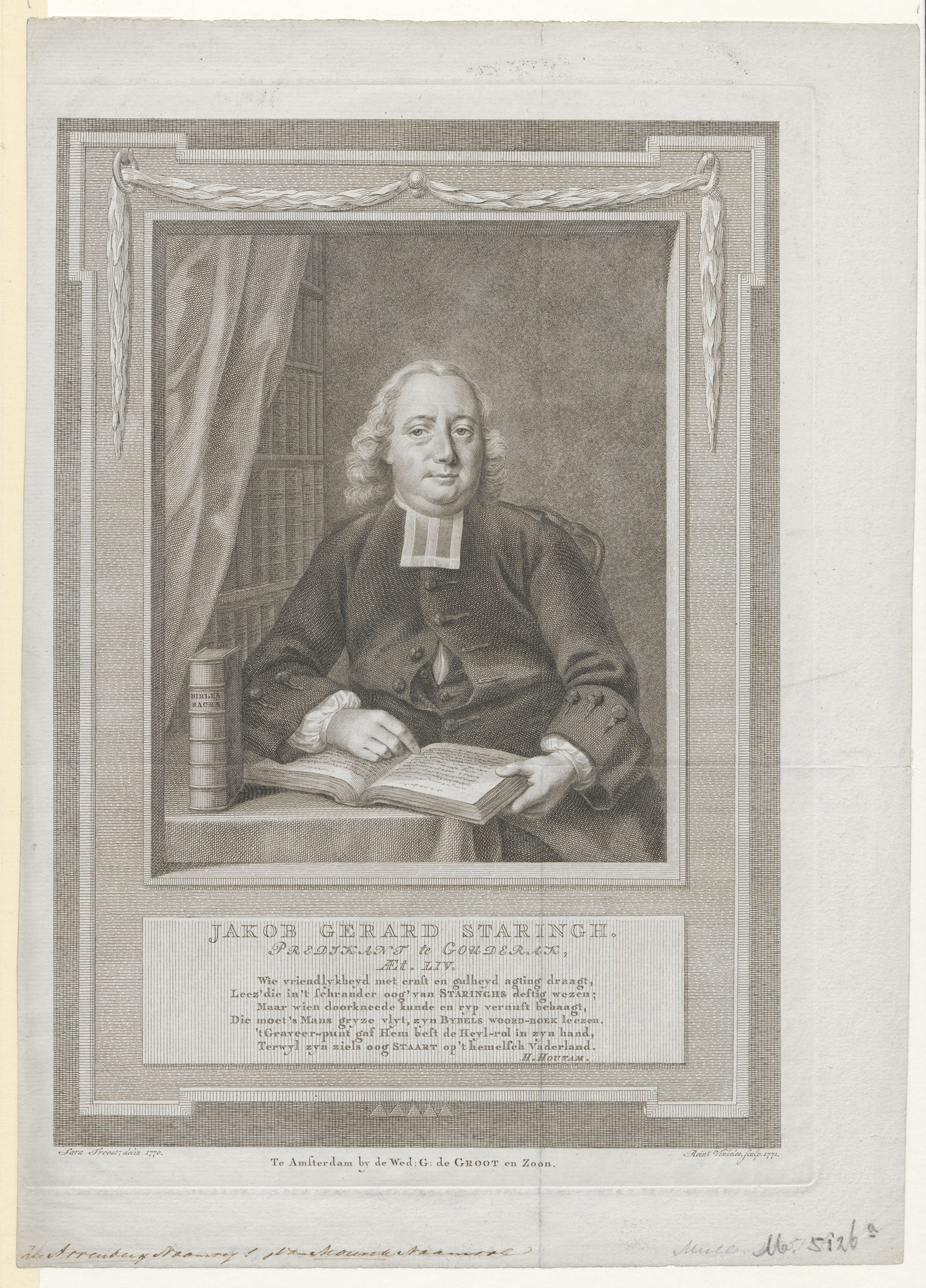 Portret van Jakob Gerard Staringh (1717-1804), predikant te Gouderak en auteur bijbels woordenboek